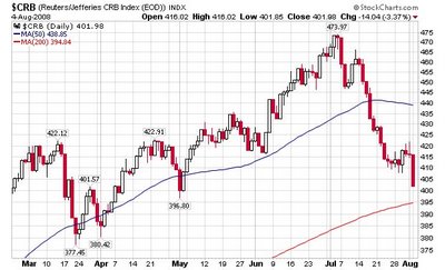 I posted on July 17th that a historic reversal was at hand in Oil has Peaked, Banks have Bottomed, and that has proved prescient advice. Shorting commodities and resource stocks has been a great trade in the last few weeks, and one I have consistently recommended since late April, despite the continued hype and ludicrous price targets from many investment bank analysts, who have yet again revealed themselves to be glorified cheerleaders dancing around the latest momentum trade. The short banks/long energy trade was dangerously crowded, as evidenced by hedge funds suffering their worst month in years in July in a stampede for the exit.
